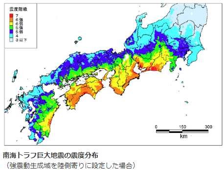 この被害想定によれば、南海トラフ巨大地震がひとたび発生すると、静岡県から宮崎県にかけての一部では震度7となる可能性があるほか、それに隣接する周辺の広い地域では震度6強から6弱の強い揺れになると想定されています。